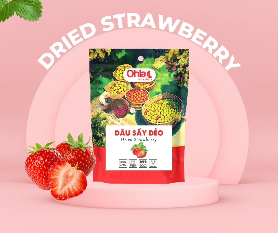 Trong hệ sinh thái thương hiệu của Lương Gia, Ohla là cái tên quen thuộc với những người yêu thích các sản phẩm trái cây sấy dẻo chất lượng cao. Dòng dâu tây sấy dẻo Ohla được sản xuất trên cùng dây chuyền đạt chuẩn quốc tế, đảm bảo độ dẻo mềm tự nhiên, vị chua ngọt hài hòa và giữ lại trọn vẹn hương thơm vốn có của dâu tây Việt Nam.